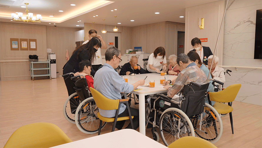 각 층마다 간호인력이 상주하고, 어르신 약 2명당 1명의